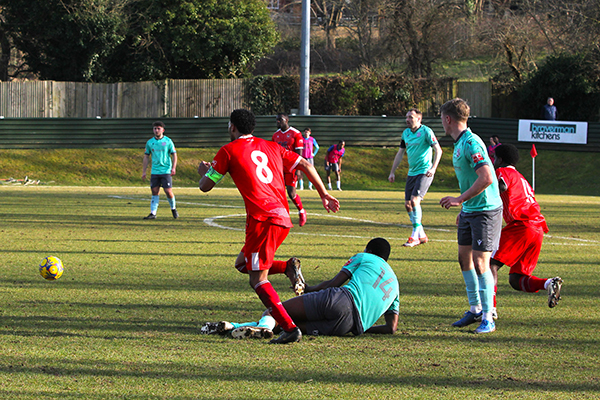 Seven minutes later, Bradley Clayton found space for a shot which took a deflection and flew just wide of the far post while a chance for Hassan Jalloh shortly after was blocked after he had danced into the area and rebounded safely as the Enfield defence came under pressure.