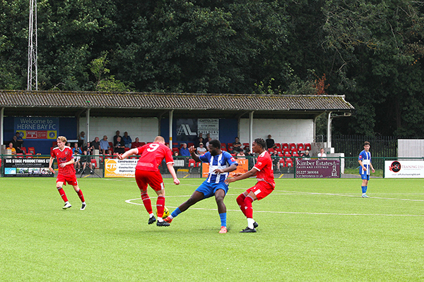 With still plenty to play for after the break, Smith did well to turn Kamara and get a shot off but again it was too high to trouble Brooks in goal and the Bay’s defence, marshalled by the vastly-experienced Liam Friend and the impressive Salmon, were relatively untroubled. Herne Bay also had a goal ruled out when Michael Salako headed home a Kuchkov cross but the offside flag was no surprise.