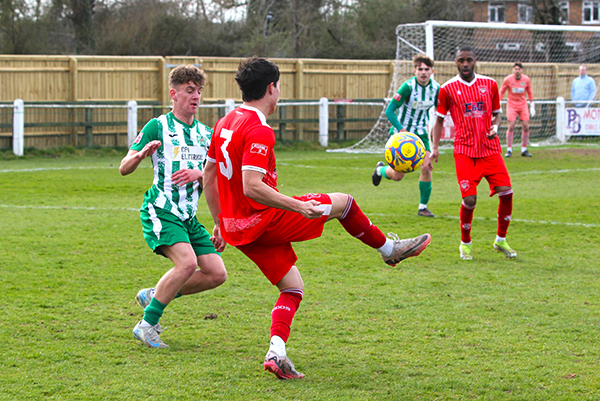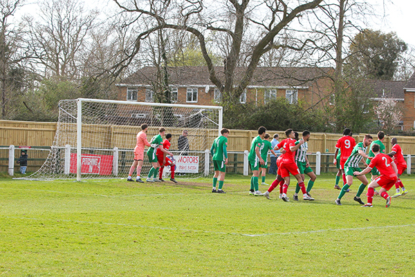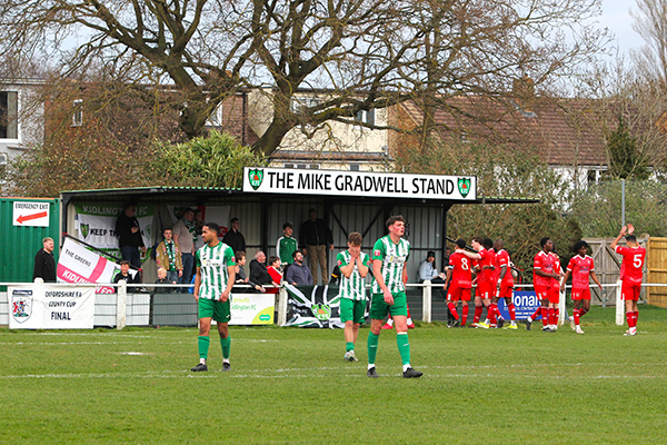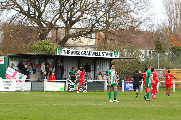 As expected, Kidlington were quick out of the blocks with a strong breeze behind them. After just three minutes, a corner was half-cleared and then fired back in towards goal by Charlie Bacon. Dan Hosier pushed it away and a follow-up was blocked by Jayden Ashbourne with strong, though clearly incorrect claims for a penalty. Another corner followed and this time a strike from Patrick Osborne was well saved by the Woods keeper.