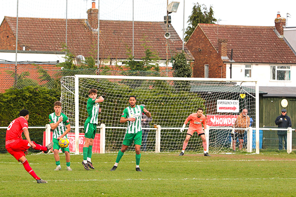 The home side quickly tested Hosier with a shot from Castle that brought a comfortable save and then Alex Cathline was introduced for Jayden Ashbourne, meaning a change of formation and that didn’t immediately look comfortable. A short spell of pressure saw Hosier pull off a great save to deny Bacon.