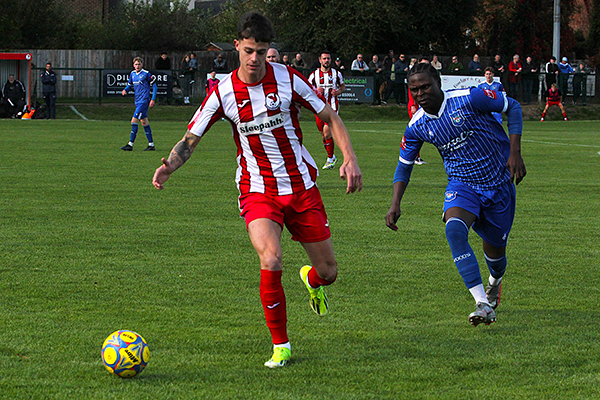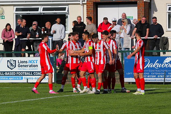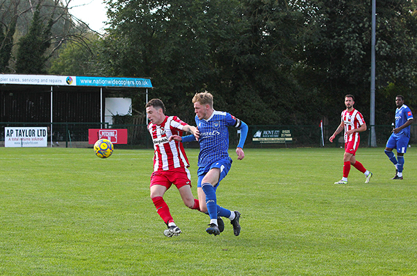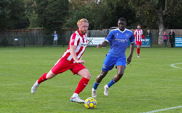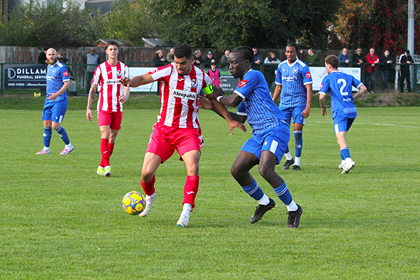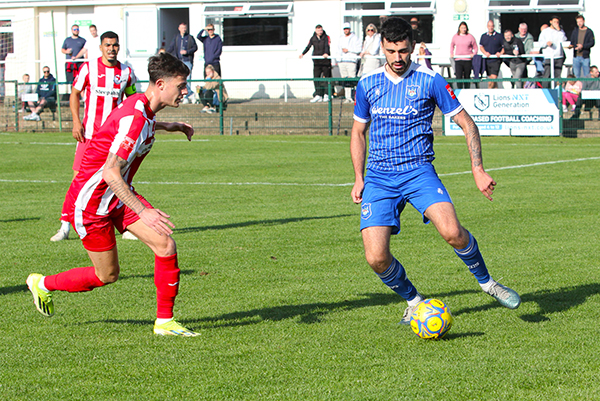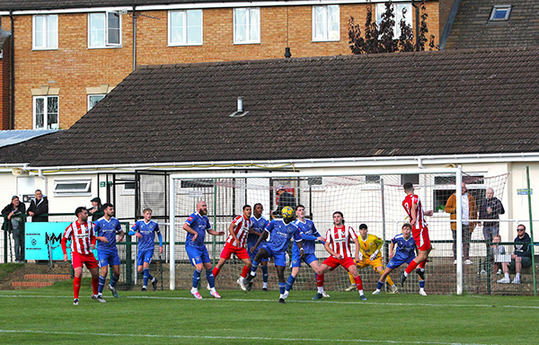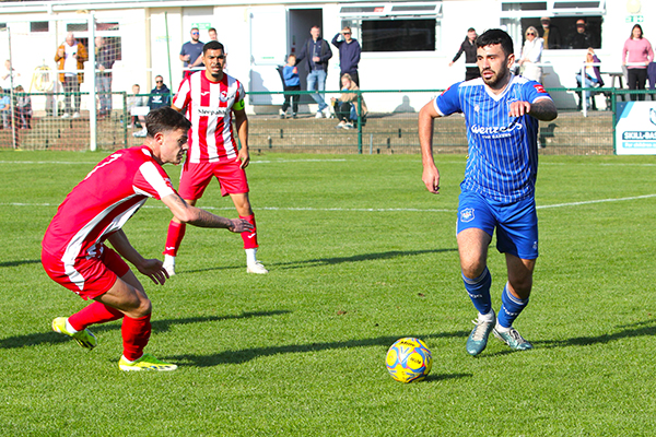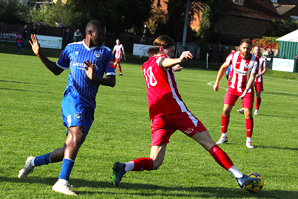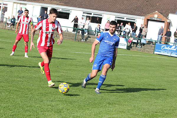 With the sun shining brightly, the home side looked full of confidence at the start with two early chances, Lynton Goss having a shot saved at the near post by Ryan Hopping and then the same player headed a Sam King cross over the bar.