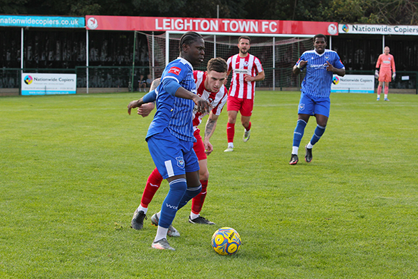 Leighton were soon on the front foot again though. Former Woods skipper Luke Tingey, now a permanent fixture in the home club’s defence, sent over a trademark long-thrown which was only half-cleared and a shot from King was deflected on by Jack Sayell but wide of the far post. After 17 minutes, Louie Barrett cut in from the right and had an effort well saved by Hopping as the Woods continued to come under pressure.