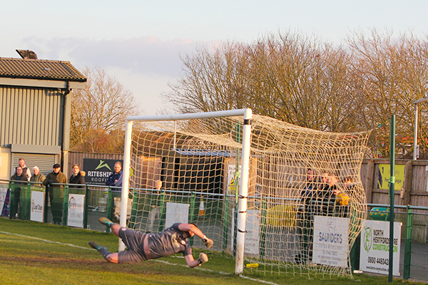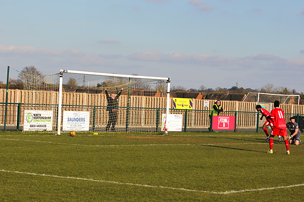 Eight minutes later, some good work by Jalloh on the left saw him tripped just inside the box and the Referee pointed to the spot with skipper Perez-Duah maintaining his 100% record from twelve yards by sending Gooch the wrong way and putting the Woods in front for the first time in the match.