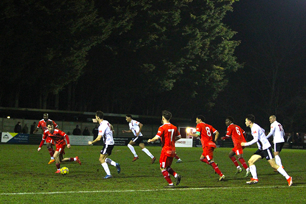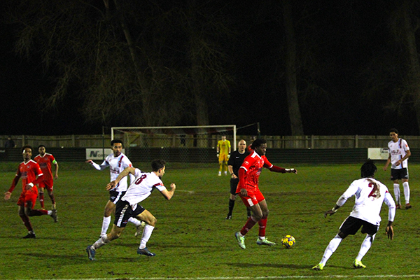 Manager Gary Meakin named an unchanged side from that which had finally found their goalscoring touch at Stotfold but they got off to a bad start when the visitors took an eighth minute lead. A high press led to a mistake and a ball was slipped through for Carlos Velasco to give goalkeeper Aymen Azaze no chance.