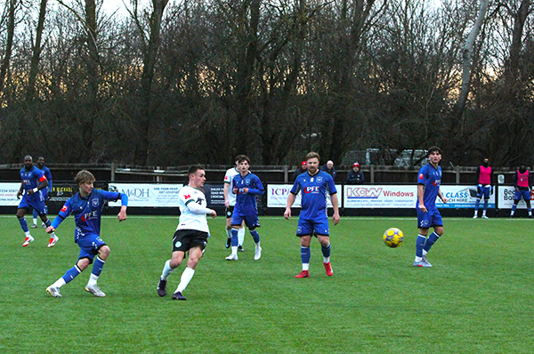 Biggleswade were still looking dangerous but with the visitors gradually getting more of the ball with Freddie Ford and Atkinson both making some inroads and they forced a corner on 29 minutes from which they had a chance of an equaliser. Carl Stewart’s ball in was headed out to the left-edge of the box and Dan Williams played it quickly to Bates who had plenty of space in the box but perhaps rushed his shot and it was always rising over the bar.