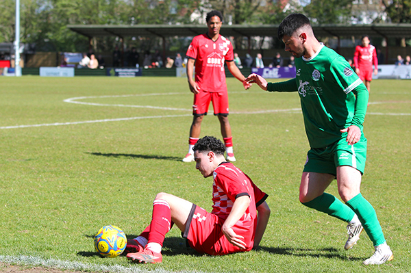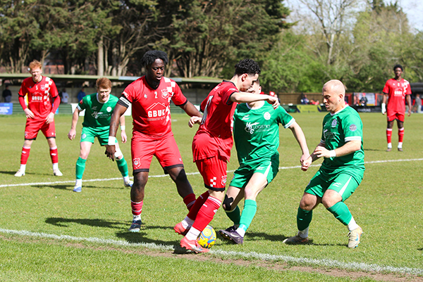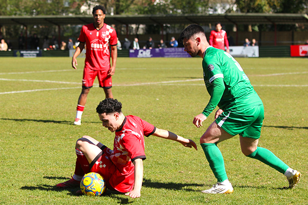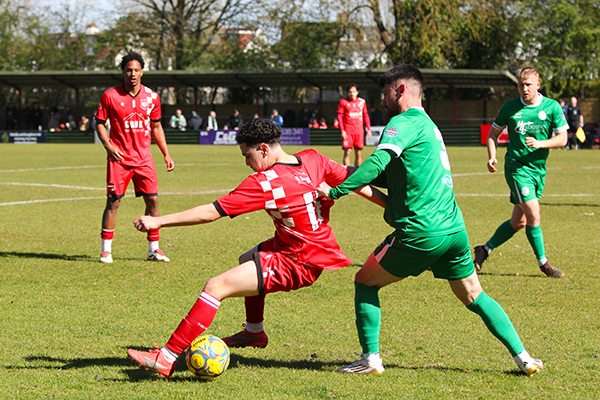 With top scorer Alie Bangura serving a one-match suspension, there were a couple of changes to the side that had picked up a creditable 4-4 draw at Beaconsfield on Easter Monday as in came Hamid Seisay, Freddie Ford and his Under 18s teammate Bilal Sajid Ouardi for his debut. Aidan Tarrant
