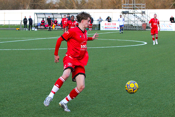 Just two minutes later, the game swung the way of the home side as a good run from the left was ended by a rash challenge from behind by Folarin. A second yellow card for the skipper ended his afternoon as the Woods were reduced to ten men and Vukaj had no problem tucking away the resulting spot-kick as he had at the Skyline earlier in the season. Manny Folarin had picked up his second dismissal of the season, the only Northwood player to have been red-carded, and coincidentally, by the same referee each time.