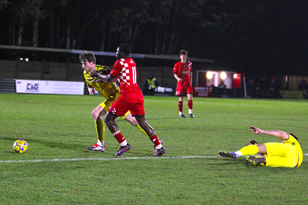 There was just one enforced change to the starting line-up that had picked up a point at the weekend with Revin Domi ruled out with injury and there was a surprise appearance for former Woods assistant manager Keagan Cole who was drafted in from Hendon to cover, having been dual-registered all-season. Another new recruit, striker Mohamed Ali, an arrival