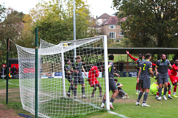 Northwood’s deep defending was seeing Leverstock Green enjoy a lot more of the ball in and around the box but they had rarely looked like scoring before they did level on 77 minutes. A ball knocked into the box by Tom Georgiou saw a series of touches and attempted clearances before it fell to Sekyere and his shot took a big deflection off Mack Miskin to fly into the far corner.