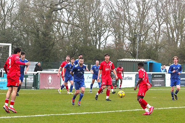 Back came Northwood through Otote, cutting in from the left and setting up Revin Domi for a shot which took a deflection off a defender and looped up and over for a corner. Nothing came of that but almost immediately a great ball from Andrew Osei-Bonsu picked out the run of Bangura but Bloohn was out quickly to just avert the danger.