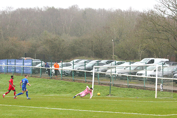 It wasn’t totally one-way though as Woods goalkeeper Ryan Kelly was also called upon to keep out a good strike from Max Kyte just before that and on 18 minutes, he also had to push away a long-range effort from Max Davis.