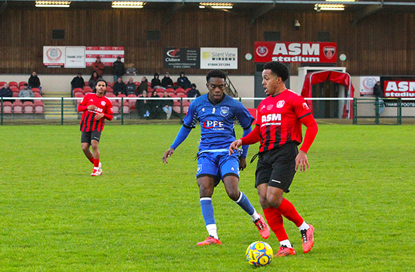 Both sides took a bit of time to adapt to the conditions with Thame shading things but neither had created an effort on goal before the Red Kites won a corner on 23 minutes and when Jack Tutton knocked it in with a high trajectory, defender Finlay Murray pounced with a free-header which he powered into the net.
