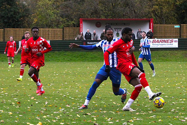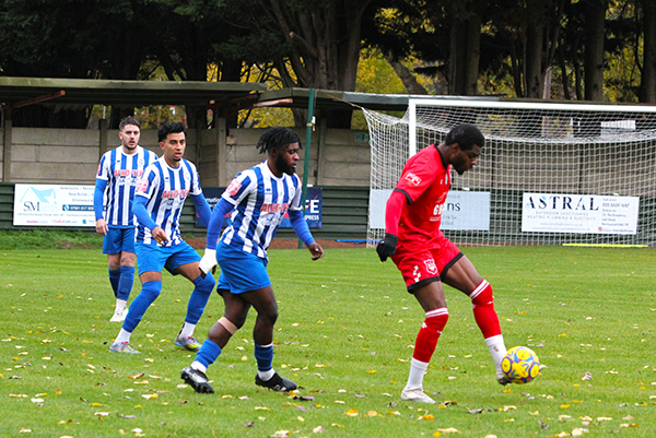 Ware, who had seen a seven-match unbeaten run ended by Hitchin Town in midweek, were able to strengthen by welcoming Gucci Soulya back to the club after a spell with Step 3 side Cheshunt while the experienced Jay Rolfe returned to the starting line-up after injury.