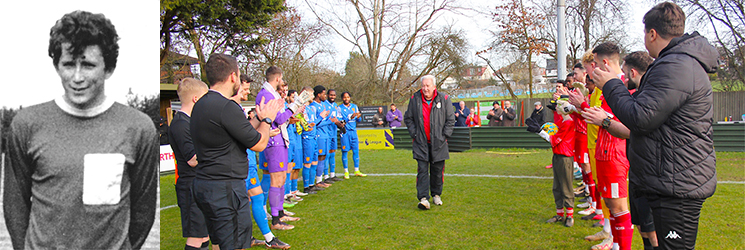 Before Saturday’s game against Uxbridge, Paul Byrne was given a guard of honour as he celebrated the anniversary of his debut for Northwood – on 27 January 1962, a mere 62 years ago! That first game ended with a 5-0 defeat at Torrington in the Harrow & Wembley League, but the young Paul wasn’t put off, and he watches the Woods to this day.