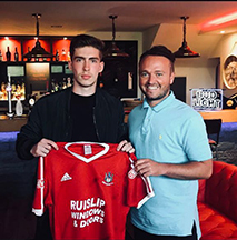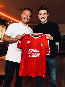 so registered is 21-year-old defender Carl Pearce (right), who played in the Bostik Isthmian Premier League for Wingate & Finchley last season before finishing the campaign in the Potters Bar Town squad that won promotion to that higher level. Carl also played at Wembley for several years.