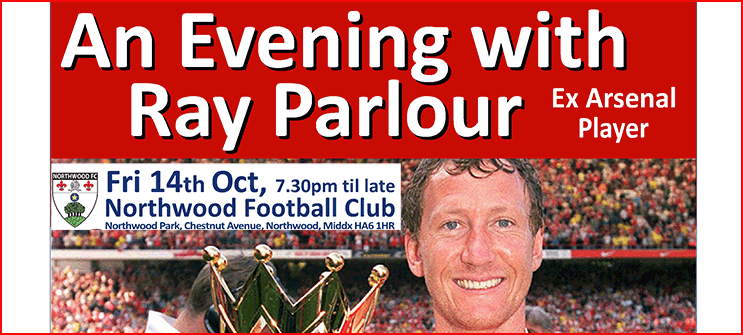This Friday, 14th October, the club presents An Evening With Ray Parlour, a fundraising event in aid of Trent's family and the hospital where he is having treatment for lymphoblastic leukaemia.