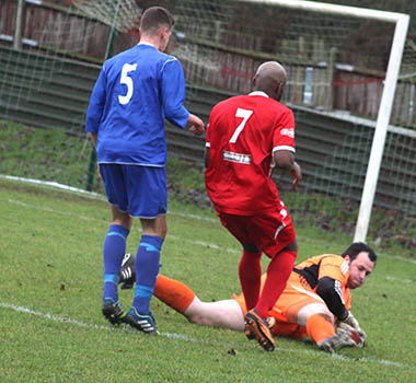 The pitch was soft in places after several days of wet weather and there was a slow start to the game which saw the visitors enjoying plenty of early possession. There was twelve minutes on the clock when Sherman’s punch away from a corner led to a long-range strike from Louis Stead but it was always going wide. A minute later Stead found space for another shot from distance but this time it was well over. Soon after this Daniel Vincent had a shot blocked and then Omar Vassell did well when cutting in from the right but then shot wide.
