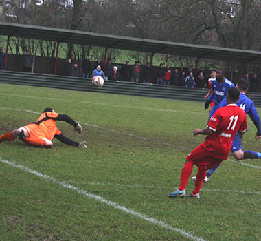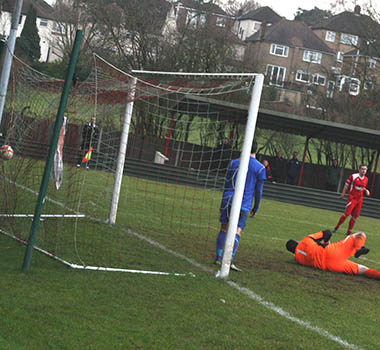 Just three minutes later Karl Oliyide found space for a low goalbound shot but this time Pearce got down well to save well. It was a better spell from Northwood as they continued to push forward and they scored a killer second goal six minutes before half-time. Oliyide did the damage with another pacy run down the right and his cut-back provided an easy chance for top scorer Niko Muir to sweep the ball in.