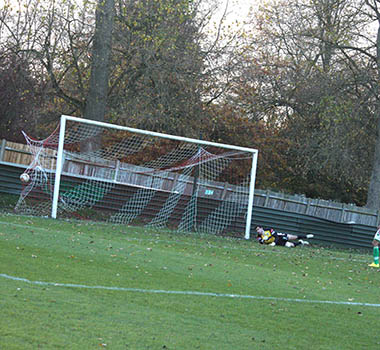 At this stage Guernsey had not used their possession well, but after 19 minutes they were almost in front as Marc McGrath combined well with Dominic Heaume to get in on goal and hit a low shot that Berkley Laurencin kept out with a swift dive to his left and a strong hand that pushed the ball wide.