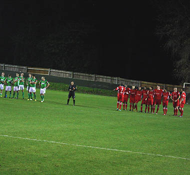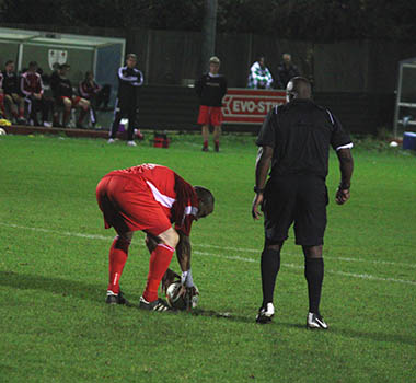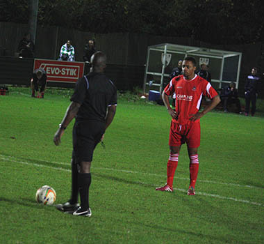 Time was running out fast but Laurencin made a superb save to keep out a flashing strike from Winch while Murray’s strike from distance flashed only just over. The final whistle meant it would be penalties and the Woods fans probably expected the worst as their record from the spot hadn’t been the best in recent times. The last successful penalty shoot-out was when winning the Middlesex Senior Cup Final against Hayes way back in April 2007 with three more recent attempts all ending in defeat – all of them against Ashford Town (Middlesex).