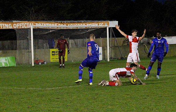 However, following their positive start some defensive hesitation created a couple of opportunities for the hosts, Luke Heneghan being presented with a chance, but the former Northwood man was unable to round keeper Andrew McCorkell with the latter dealing with the follow-up shot from Jaden Lee Thompson-Brissett. And failure to clear their lines once again almost cost Woods dear as Jake Fraling was adjudged to have been brought down by McCorkell but the Northwood stopper made sure justice was served as he kept out Ryan Hope’s penalty kick.