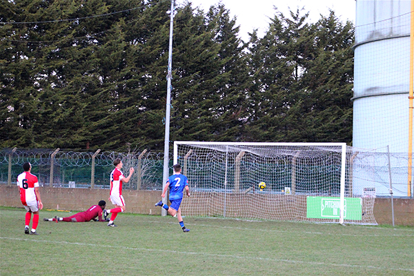 And things got better for Northwood as they managed to go into the break with an unlikely lead following an incisive move involving Carl Stewart and Helmore, the latter sliding the ball across to Akintunde who sent an unerring shot into the roof of the net a minute into added time at the end of a topsy-turvy opening half.
