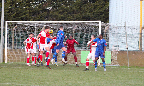Woods utilised their full quota of substitutions in added time as Lomas and Rahim Jude-Boyd replaced Helmore and Akintunde. But there was drama at the end of the six extra minutes as Woods defended a corner with Stacey clearing off the line and McCorkell bravely blocking as Northwood looked to scramble the ball clear, emotions getting the better of one or two in the melee which followed but which was swiftly broken up as the referee called time on proceedings – Woods opening up a four point gap at the top following Walton and Hersham’s home defeat to Leatherhead.