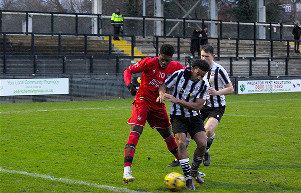 Woods made a number of changes as they looked to bounce back from the disappointing home defeat to Hanworth Villa – Andy Lomas coming back in at left wing-back with Brandon Kalu moving into the three-man defence as Harry Gallagher made way, while Junior Pavia assumed the attacking midfielder role in place of Ronan Hutchins. There was also a change to the frontline as Gareth Chendlik was preferred to Josh Helmore for the recent signing’s full debut.