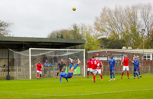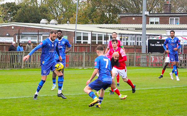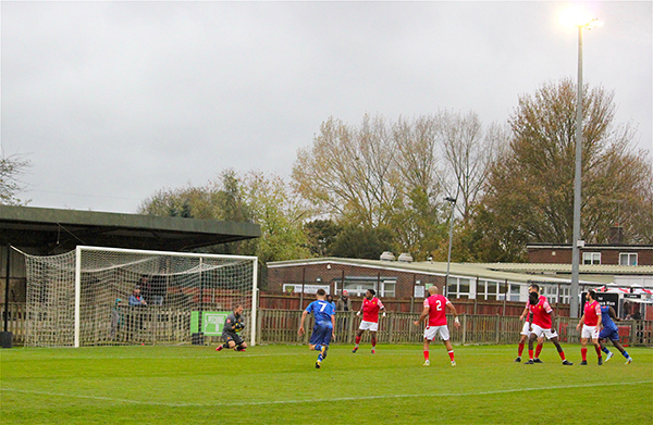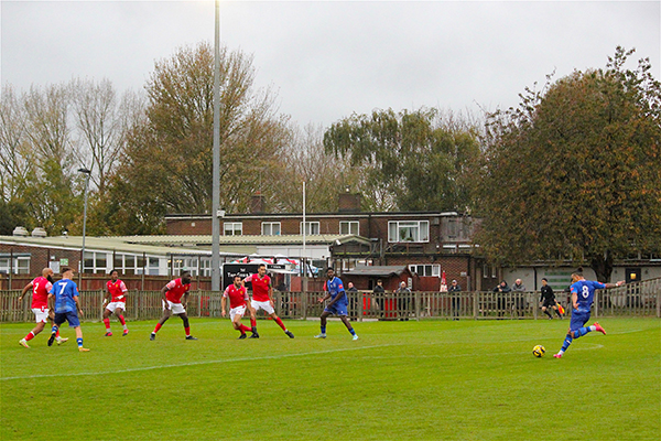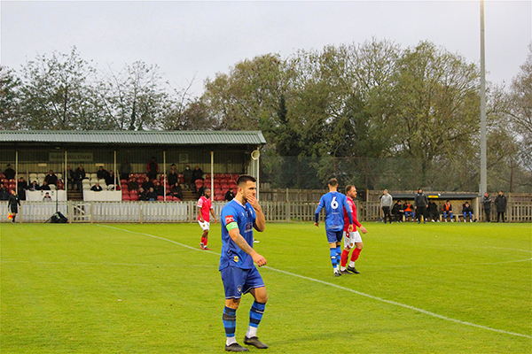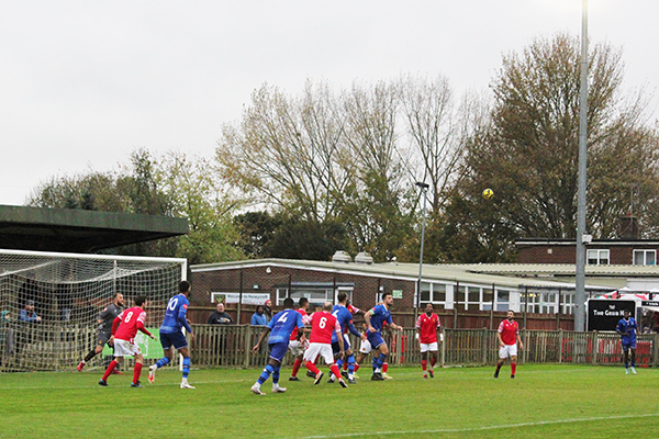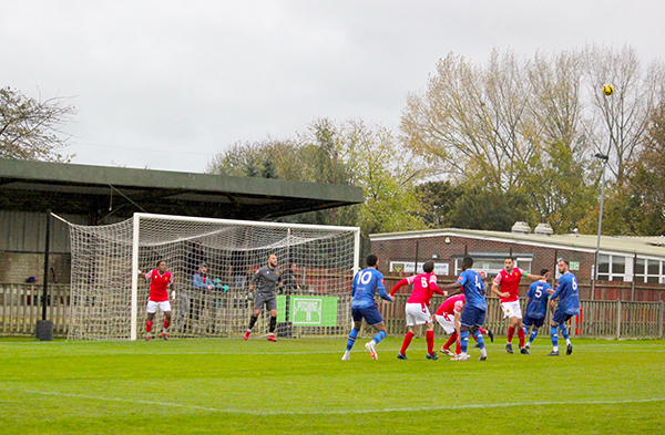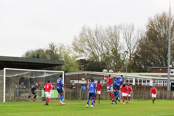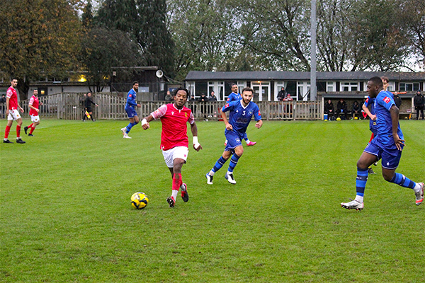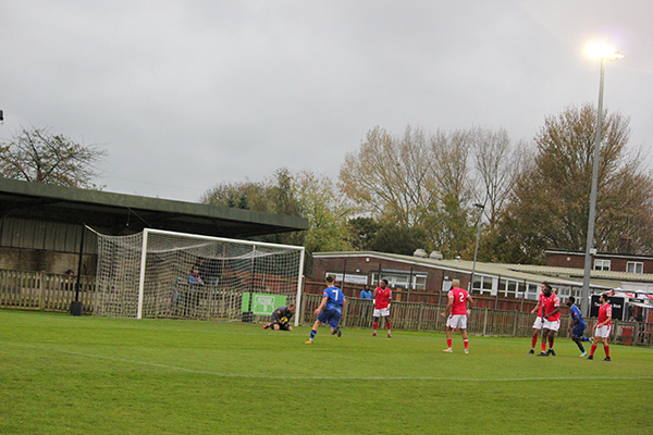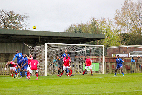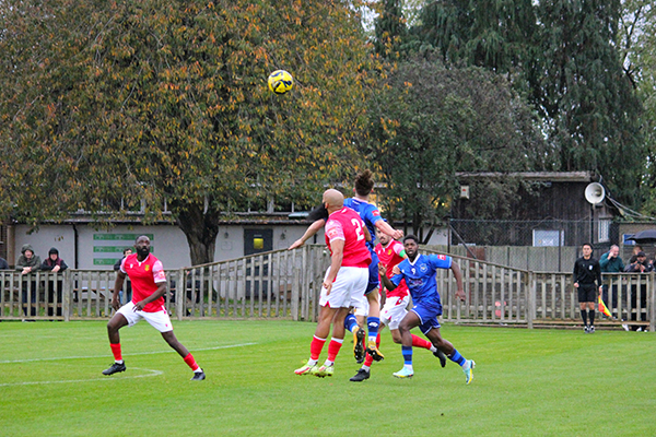 But the visitors were unable to find a way past the ten men of Uxbridge who comfortably negotiated the remaining minutes to bring Northwood’s four match unbeaten run to an end and leaving them four points clear of second-placed Walton & Hersham.