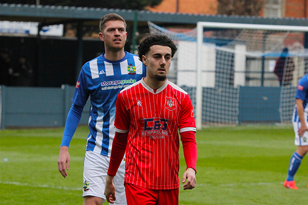 Northwood were soon back on the attack though. Williams tried his luck from distance with a shot on the turn but it was always climbing too high to worry Jupp in goal and then, on 33 minutes, both Sinclair and Laaref broke forward in a promising move. Sinclair chose to go it alone down the middle rather than pass and he drove into the box before a good tackle from Fisher just stopped him as he shaped to shoot.