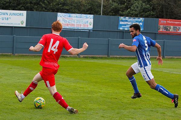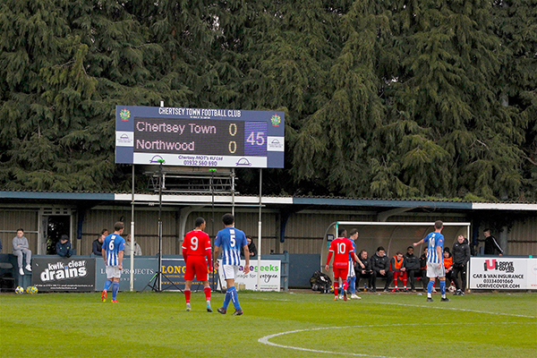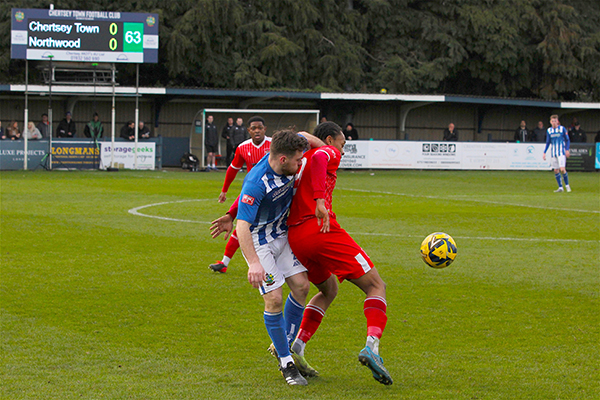 Unbeaten at home all season and with a big crowd of over 500 mainly behind them, Chertsey were quickly pushed back by a Northwood side with attacking intent. In the very first minute Laaref combined with Dan Williams to send Deago Dunbar-Bonnie into the box and his cross was blocked for an early corner.