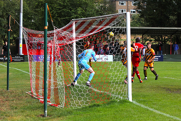 Aylesbury were yet to get into gear but when they did, after 15 minutes, they went very close to taking the lead. A corner dropped to Mo Hashi, who had netted four times in the club’s opening two league matches, and showed good skills to swivel and strike across goal but just wide of the far post with goalkeeper Dan Hosier only able to watch with relief.