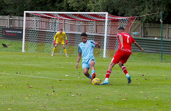 But a second goal wasn’t far away and it came on 69 minutes as the Woods found themselves stretched at the back and Josh Marcon stole in round the back. Hosier did well to keep out his first effort but the ball rebounded kindly and the same player drilled it back into the net.