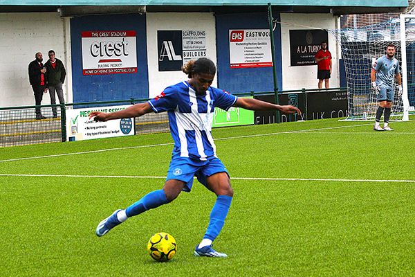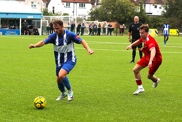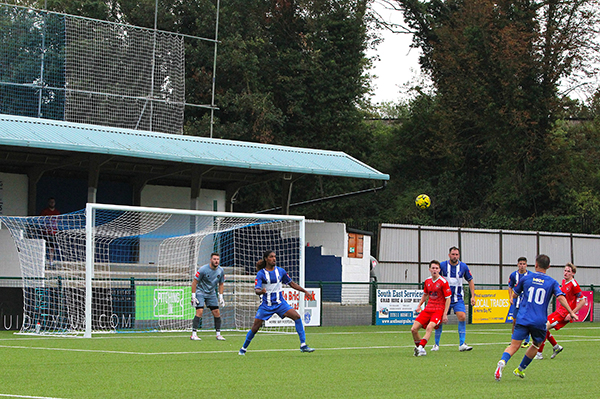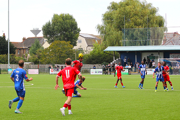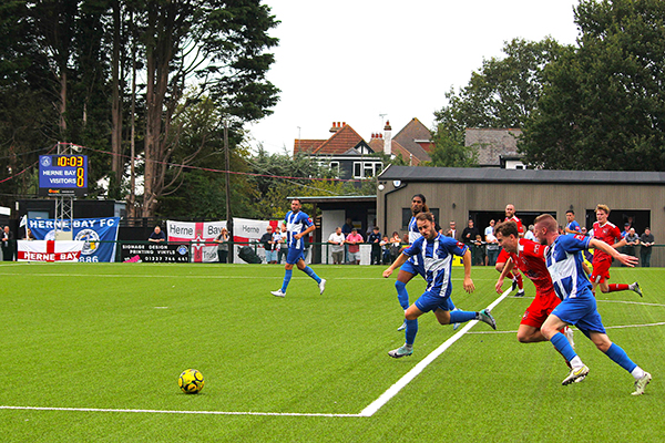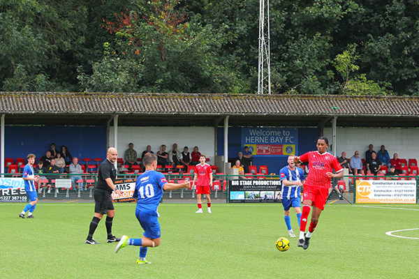 With still plenty to play for after the break, Smith did well to turn Kamara and get a shot off but again it was too high to trouble Brooks in goal and the Bay’s defence, marshalled by the vastly-experienced Liam Friend and the impressive Salmon, were relatively untroubled. Herne Bay also had a goal ruled out when Michael Salako headed home a Kuchkov cross but the offside flag was no surprise.