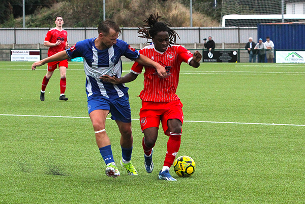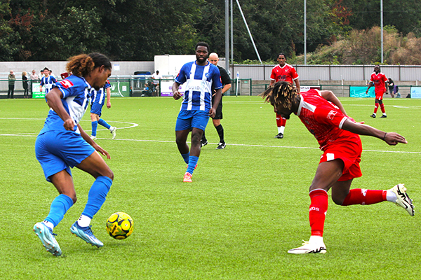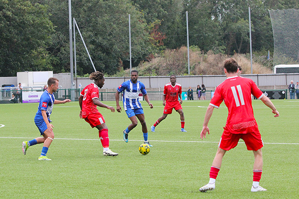 Yet, it was Northwood who made the better start to the game on the home side’s 3G pitch with Harry McKenna finding space for a shot which flashed only just over the bar after just four minutes and then Prince Mbengui, having been set up well by Gyimah, fired a shot well wide four minutes later.