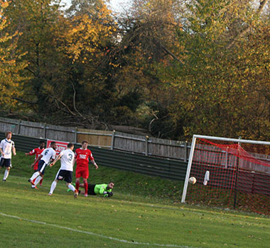 But Northwood had a further setback after 54 minutes as Diop got past Mark Burgess on the left and then cut inside past the covering James Burgess. It was Mark Burgess who was trying to get back into position but in doing so he clipped the Bedford striker who went down for a spot-kick. Bilal Yafai despatched the penalty well to double the Eagles lead. Laurencin had to save another effort from Diop a minute later but then the Woods started to press. Vassell’s run and cross saw Hull concede a corner and from that, drilled by Murray, Burgess headed just a few inches over the top.