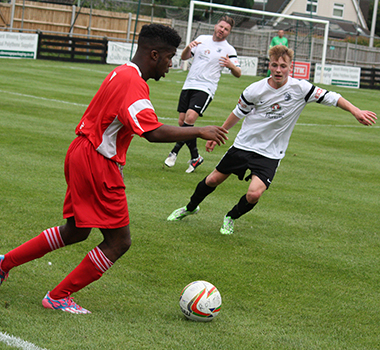 But on 43 minutes the Woods conceded their first goal of the season as Watters did well to knock in a cross from the left and Robins stretched out a leg to divert it goalwards. Haigh had taken a step the other way in an attempt to save and although he made a gallant attempt to recover, the ball went in under his body. Northwood tried to hit back immediately when they won a free-kick twenty-five yards from goal. It was Murray territory and he struck it well but Yates also got down well to his right to scramble it away. Almost immediately the Crows countered quickly but Haigh kept out Robins’ shot at his near-post.