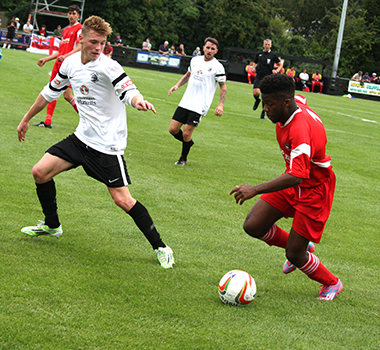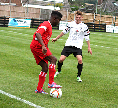 But it also didn’t take long for the confident Woods to start to threaten on the break and a good move saw Holland slip the ball to the overlapping Andy Lomas and his cut-back allowed Louis Stead to shoot and although it took a deflection it wasn’t enough to take it past goalkeeper Ron Yates’ dive. Lomas then returned to compliment to supply Holland with a ball which he carried across the area before shooting but the ball was always rising and flew over the top of the goal.