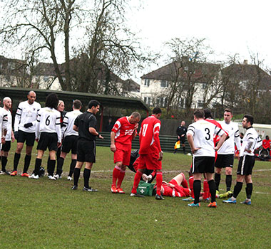 Ryan Ingrey had an opportunity before the break but shot weakly at Laurencin and then both sides were forced into a substitution. Ryan Towner replaced Erkan Okay for the visitors but more significantly Northwood skipper Steve Brown was forced off having rolled his ankle and was replaced by Myles Stephenson with James Burgess dropping back into central defence.