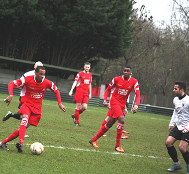 Northwood’s eleven match unbeaten run came to an abrupt end as title-challengers Royston Town swept to an emphatic victory at Northwood Park on Saturday. Very little went right for the Woods, losing Alex Nolan to a groin strain suffered in the warm-up before the game had even started. Georges Ehui was promoted from the subs bench to cover in an unfamiliar right-back role but in an otherwise unchanged starting line-up from that which had secured a superb win at Chalfont St. Peter a week earlier.