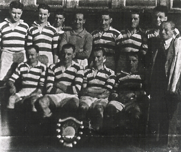 This photo was taken before Northwood played the Northwood Hospital Cup final against Harefield United at Northwood Rec. Northwood played that day in blue and white hooped jerseys as Harefield's red clashed with their normal colours.