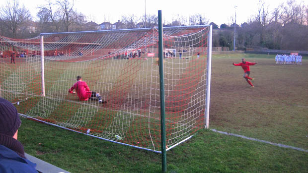 There had been little goalmouth action at either end throughout the Central Division match until then, and the encounter - played on a bumpy pitch in a gusty wind - had looked to be heading for a goal-less draw until then. The match report and photos are here.