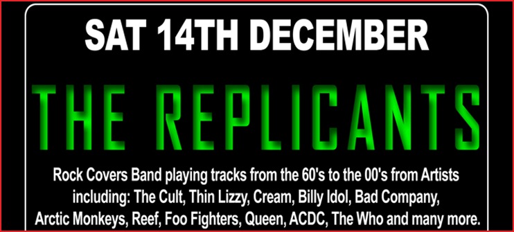 Make a note in your diary for Saturday 14th December, when the rock cover band The Replicants will be taking the stage at Northwood FC!